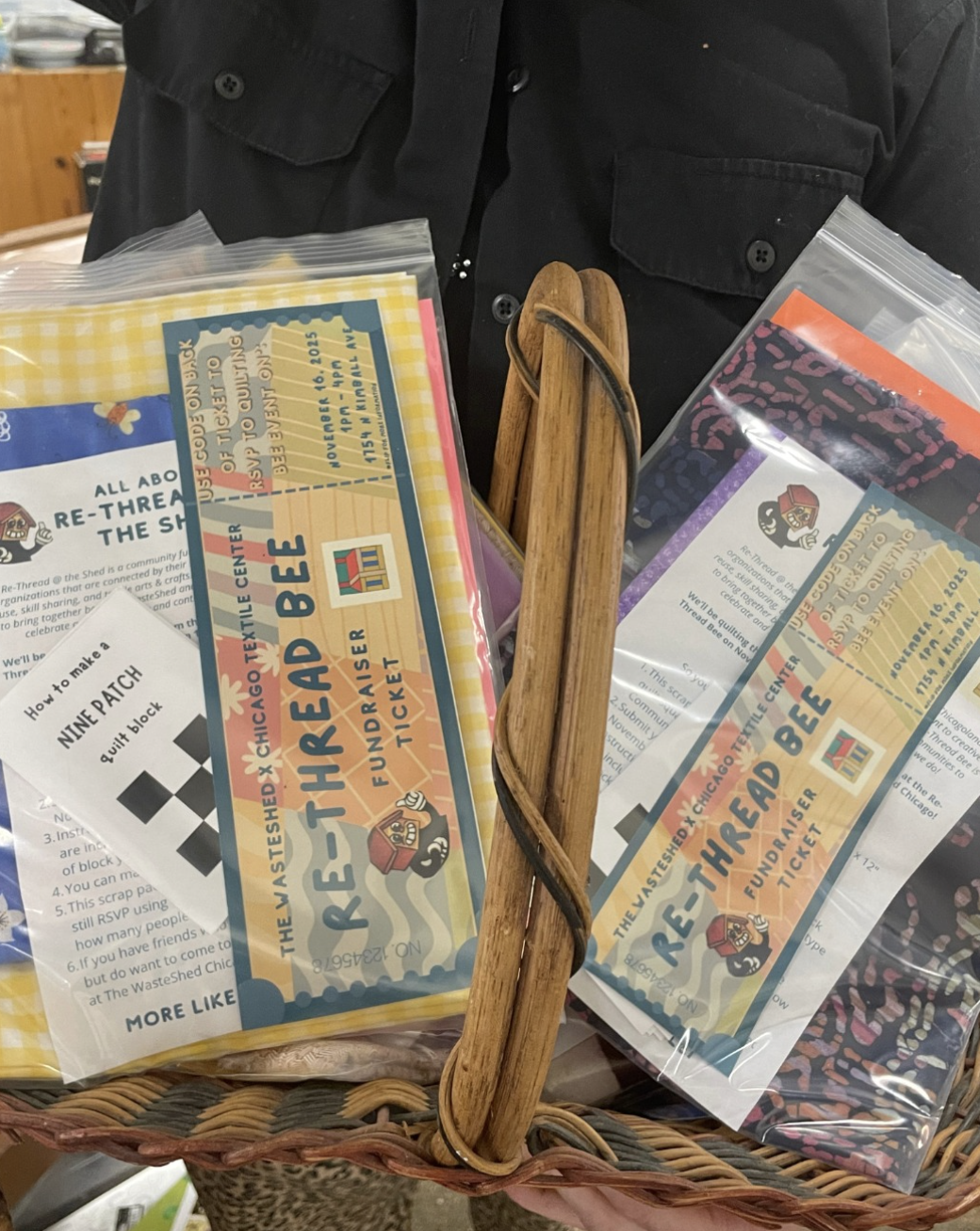 Fabric bundles ft. educational quilting zines by Chicago Textile Center and extremely cute Bee tickets designed by our social media intern, Nazari!