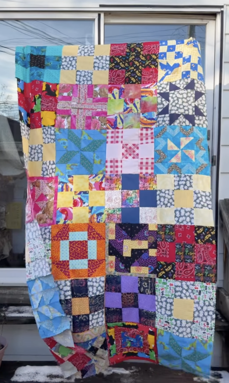 1 of 2 twin sized quilt tops that Daliah assembled from community blocks!