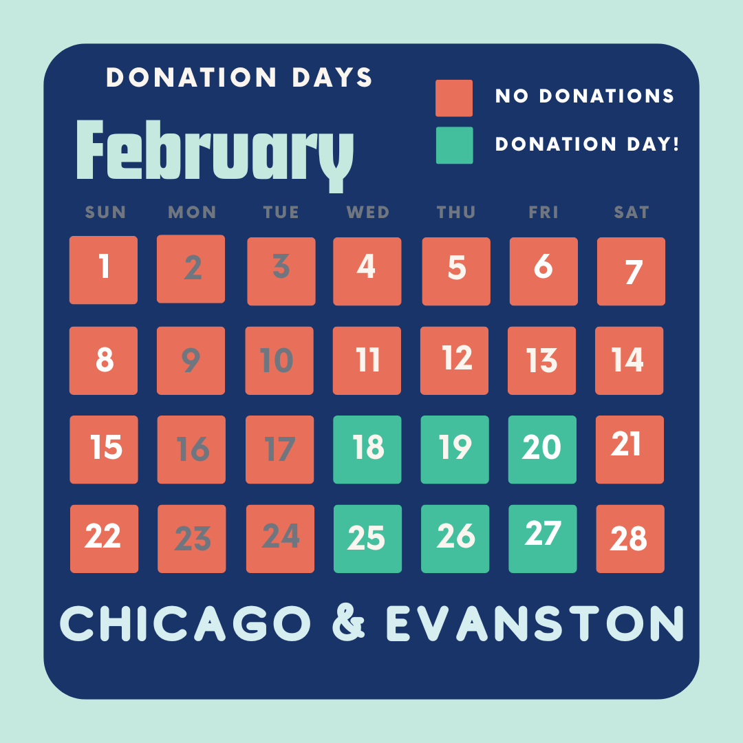 Donations are in-person drop-off only, Wed-Fri 11am-5pm certain weeks each month. Please check the calendars below to see which weeks each month we are open for donations. We do not have a pick-up service. We do not accept donations via courier or mail.