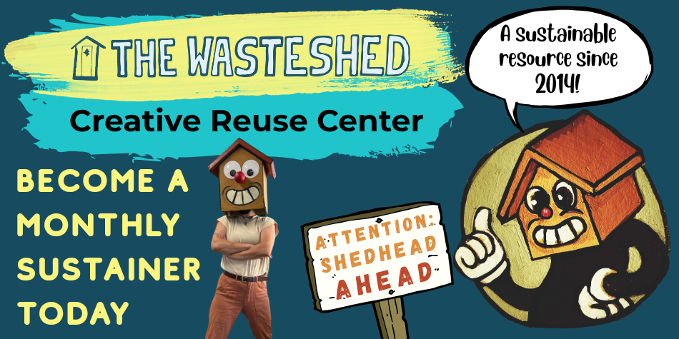 Here’s where you come in: asmall monthly donation can help The WasteShed become sustainable… so we can continue to serve 30,000 people a year with $800,000 worth of art materials that would otherwise be landfilled.